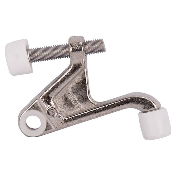 This hinge pin door stop with a plastic tip is ideal for protecting door and wall. Comes with an adjustable screw.