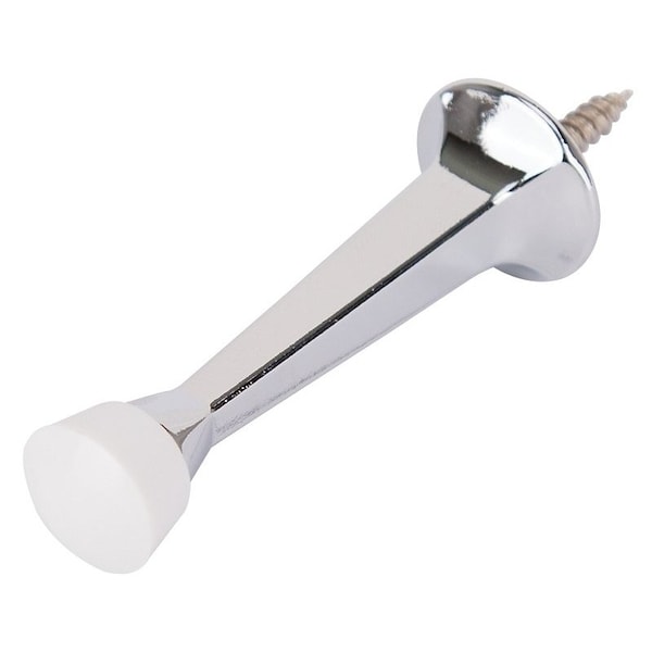 Heavy-Duty Rigid Door Stop, 1 in Dia Base, 3 in Projection, Die-Cast Zinc & Plastic, Chrome