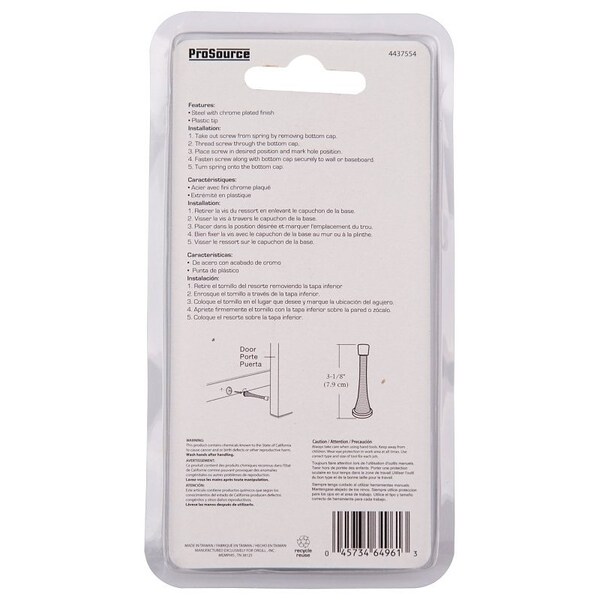 Heavy-Duty Spring, 15/16 in Dia Base, 3-1/8 in Projection, Plastic & Steel, Chrome Plated