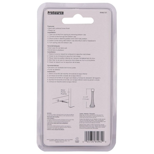 Heavy-Duty Spring, 15/16 in Dia Base, 3-1/8 in Projection, Plastic & Steel, Polished Brass