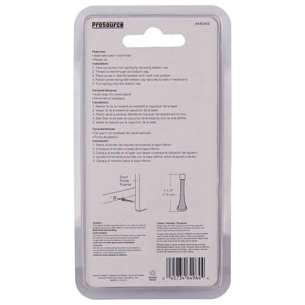 Heavy-Duty Spring, 15/16 in Dia Base, 3-1/8 in Projection, Plastic & Steel, Satin Nickel