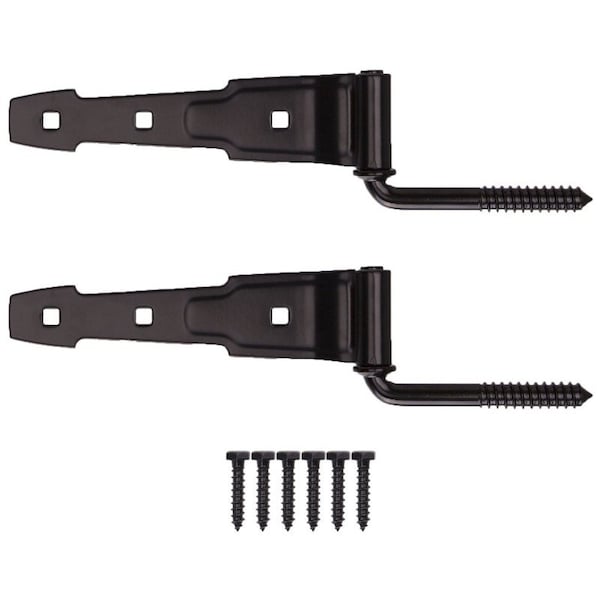 Designed for applications with narrow mounting surfaces, such as gates, barn and shed doors, storage bins, and tool boxes. The strong, fully enclosed spring closes gates or doors automatically and is adjustable. Tight pin allows right or left hand applications. Ornamental design. Lags matching finish are included for mounting.
