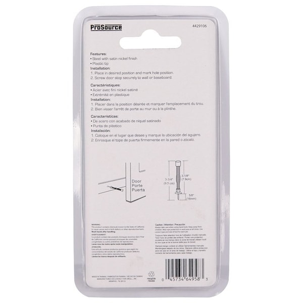 The satin nickel solid doorstop is a simple way to help prevent any damage to walls and objects behind the door. The doorstop features solid material and a long projection.