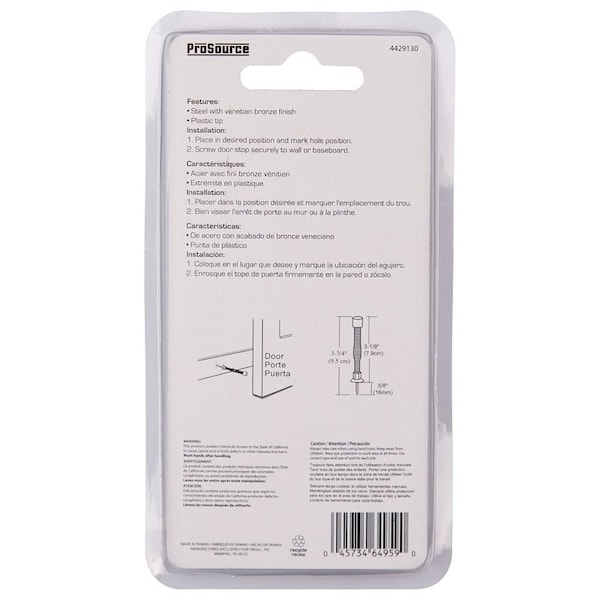 Light-Duty Door Stop, 3/4 in Dia Base, 3 in Projection, Plastic & Steel, Venetian Bronze