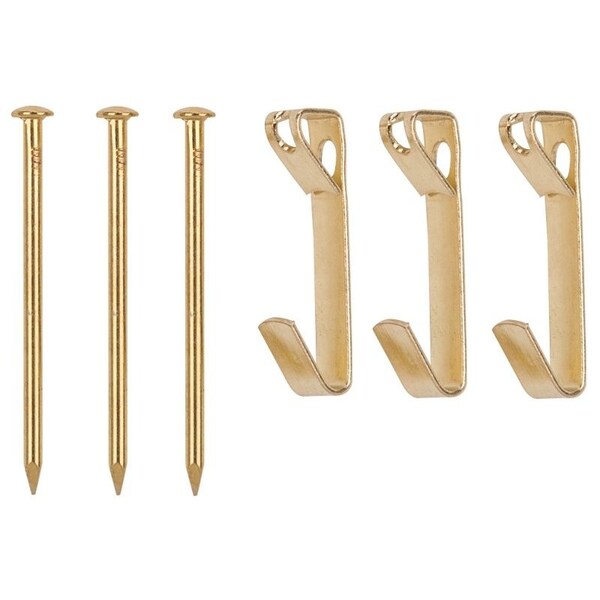 Picture Hanger, 50 lb, Steel, Polished Brass, Brass, Nail-In Mounting