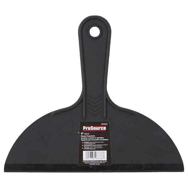 The ProSource Putty Knife has a plastic blade with a plastic handle. It has a hang hole to make stocking easier for retailers. This can be used for light-duty construction or home projects with easy spreading and easy cleanup.