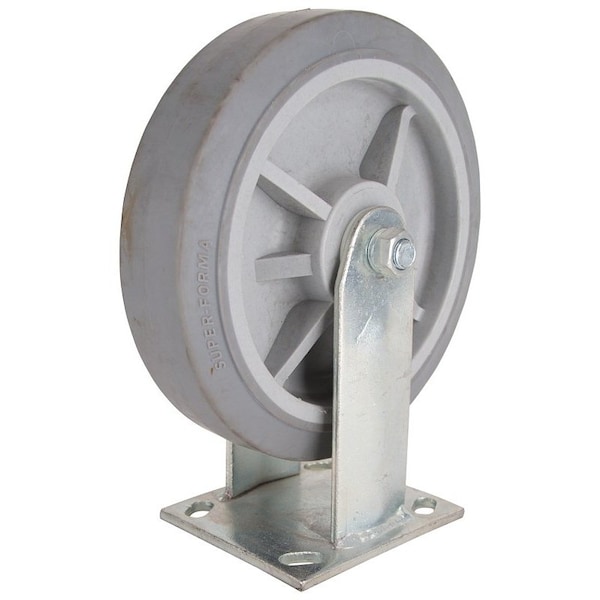 Rigid Caster, 8 in Dia Wheel, 2 in W Wheel, Thermoplastic Rubber Wheel, Gray, 750 lb