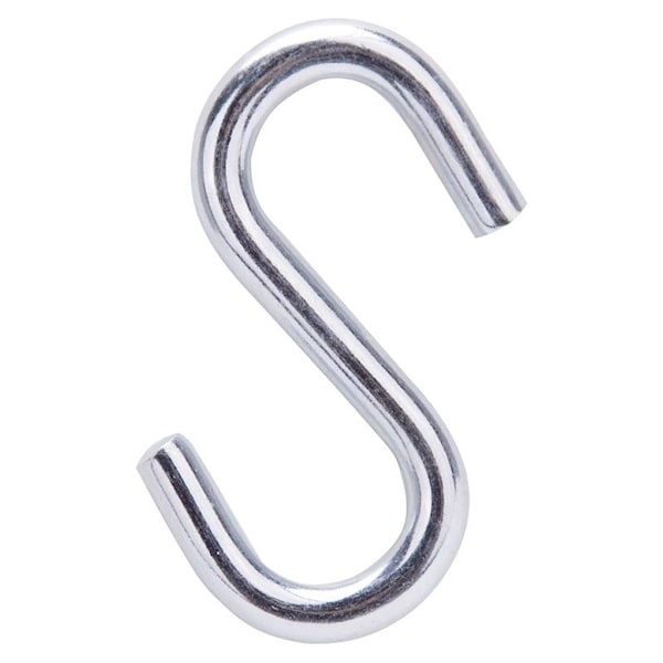 S-Hook, 100 lb Working Load, 0.229 in Dia Wire, Steel, Zinc