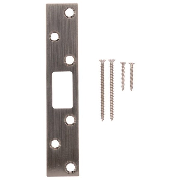 Security Door Latch Strike, Steel, Satin Nickel, 6 in H, 1-1/8 in W