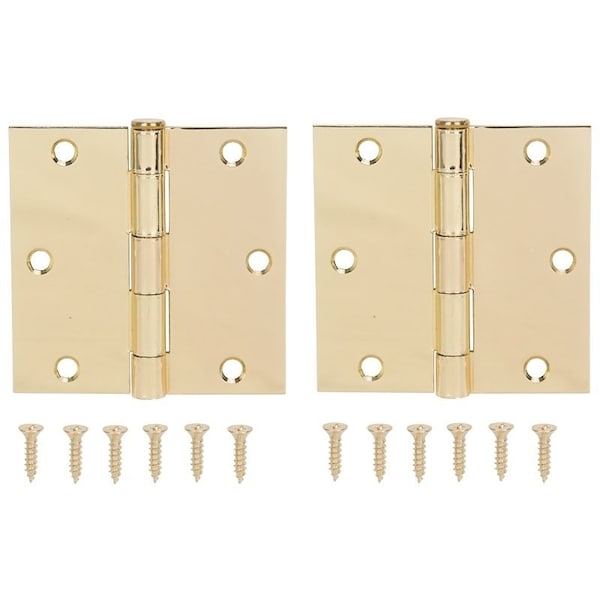 Square Corner Door Hinge, Steel, Brass, Loose Pin, 180 deg Range of Motion, Screw Mount Mounting
