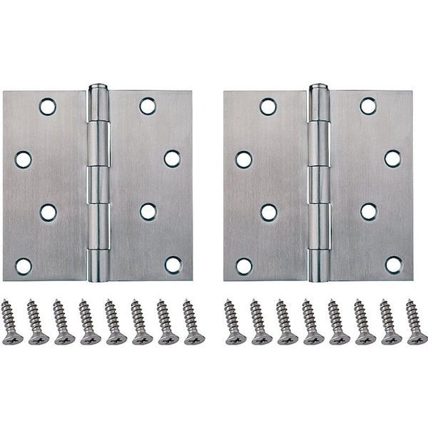 Square Corner Door Hinge, Steel, Brushed, Loose Pin, 180 deg Range of Motion