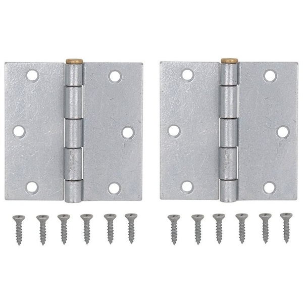 Square Corner Door Hinge, Steel, Mechanical Galvanized, Loose Pin, 180 deg Range of Motion