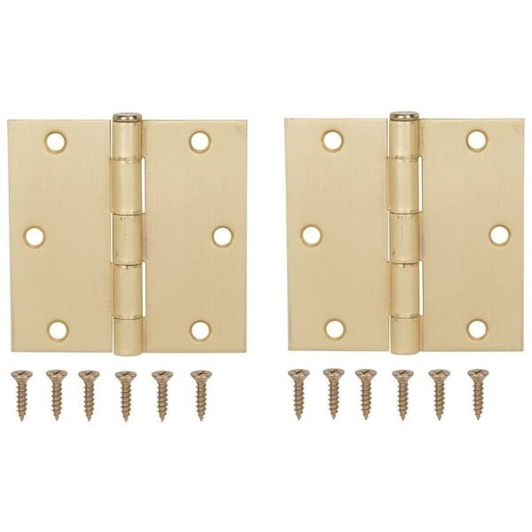 Square Corner Door Hinge, Steel, Satin Brass, Loose Pin, 180 deg Range of Motion