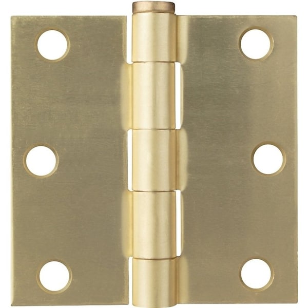 Square Corner Door Hinge, Steel, Satin Brass, Loose Pin, 180 deg Range of Motion