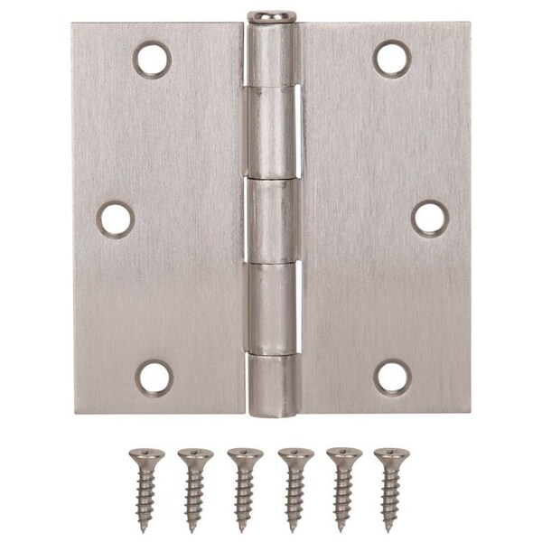 Square Corner Door Hinge, Steel, Satin Nickel, Loose Pin, 180 deg Range of Motion