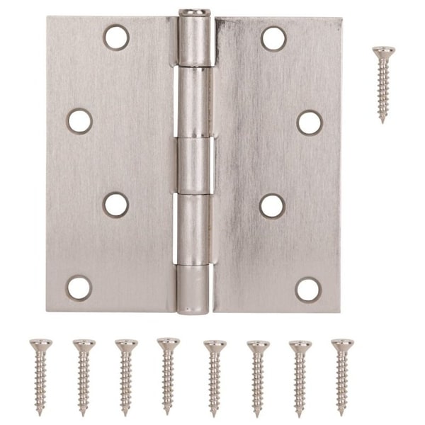 Square Corner Door Hinge, Steel, Satin Nickel, Loose Pin, 180 deg Range of Motion