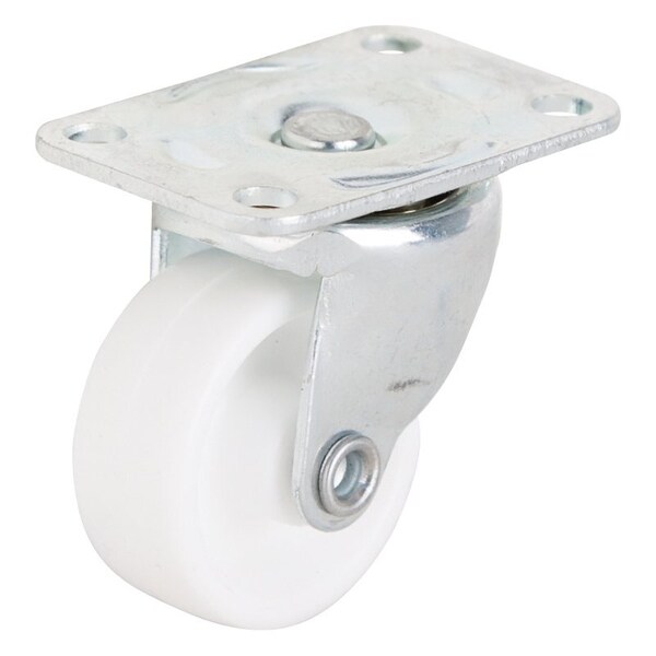 Swivel Caster, 1-1/4 in Dia Wheel, 16 mm W Wheel, Plastic Wheel, White, 40 lb