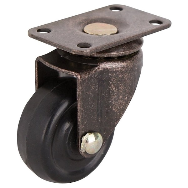 Swivel Caster, 1-5/8 in Dia Wheel, 3/4 in W Wheel, Rubber Wheel, Black, 70 lb