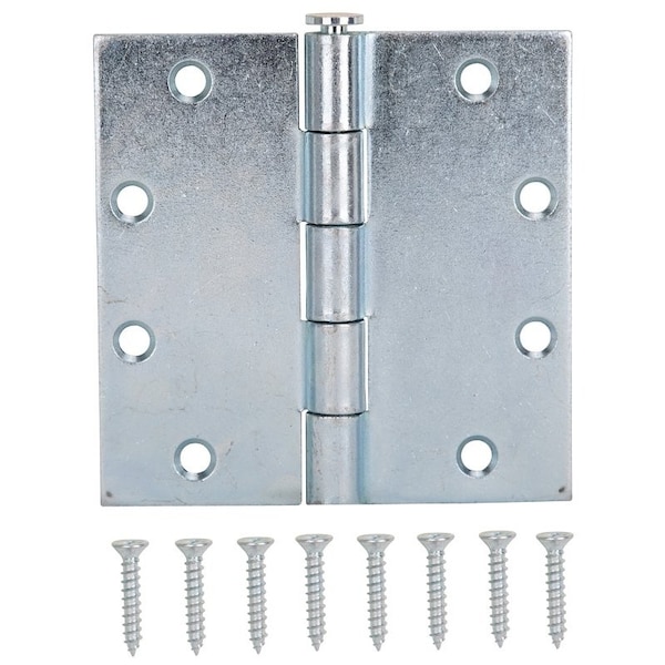 Utility Hinge, Steel, Zinc, Removable Pin, 180 deg Range of Motion, Full Mortise Mounting