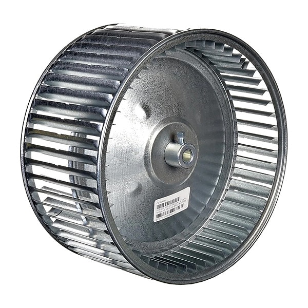 Blower Wheel, Product Type Blower Wheel, Wheel Type Forward-Curved, Number of Inlets 2, Wheel Diameter 11 15/16 in, Wheel Width 6 1/16 in, Bore Diameter 1/2 in, Wheel Material Aluminum/Steel, Rotation CW Hub End, Hub Type Convex, Wheel Hub Position Center, Number of Blades 54, Includes Set Screws Yes, Blade Shape Convex, Compatible with Grainger Part Number 821DG6, Compatible with Brand Rheem, Ruud, Weatherking, Compatible with Manufacturer Model Number W801T0503A14UHNNAS, W801T0503A14UHSNAS