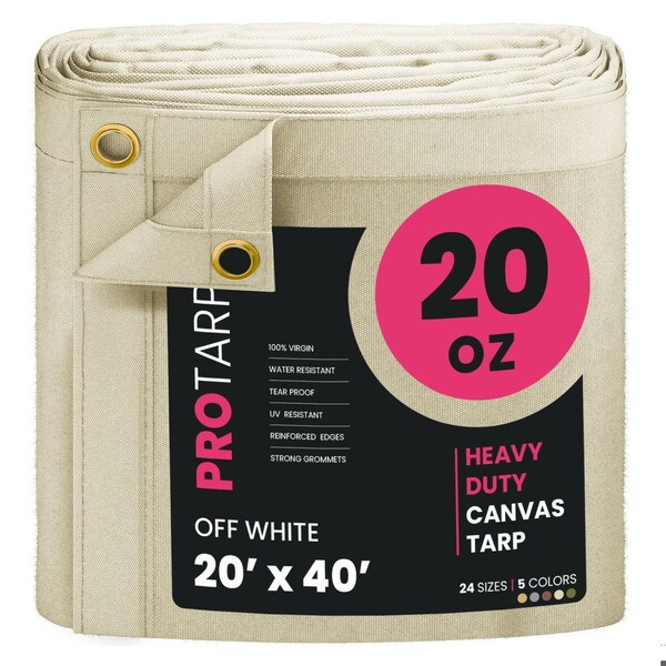 Introducing the PROTARP Heavy Duty Canvas Tarp, your ultimate solutionfor robust and reliable protection in any weather condition.Crafted from premium-grade, tightly woven polyester fabric, our tarps offer unparalleleddurability, water resistance, and UV protection. The high-quality polyestermaterial prevents tearing and fraying, ensuring your tarp remains intact even inextreme conditions. The rust-free brass grommets allow for secure and flexible tie-downs, providing a versatile and customizable solution for any application.PROTARP is not just about durability; it's about versatility too.Do you need a dependable cover for your canopy, roof, camping site, or woodpile? Our multi-functional canva tarps are perfect for residential, commercial,and industrial use. Sizes available are 14 oz and 20 oz.Whether you'reprotecting your garden equipment, creating a shelter for your outdoor adventures, or covering construction materials, PROTARP has got you covered.weather protection is at the core of our design.PROTARP tarps excelin providing excellent defence against rain, snow, sun exposure, and wind. The UV-resistant coating protects your belongings from sun damage, while the water-resistant feature ensures they stay dry during heavy rains.Additionally, the double-stitched hems and additional poly-vinyl patches at every grommet and corner enhance durability, reducing wear and tear and preventing grommet pull-out. Thismakes our tarps a reliable choice for any heavy-duty application, ensuring they stand the test of time.Don't settle for less when it comes to protecting yourvaluables. Choose PROTARP for top-notch performance, longevity and reliability.Order now and experience the ultimate protection solution for allyour needs!