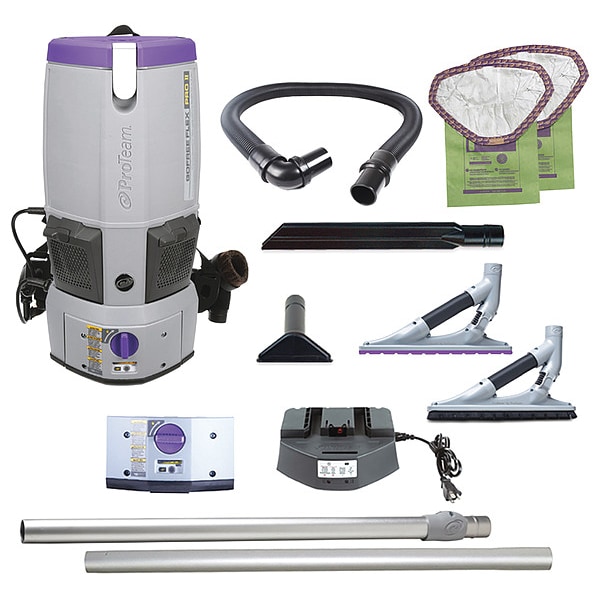 Backpack Vacuum, Vacuum Power Source Cordless, Vacuum Filtration Type Standard, Filter Efficiency 99.97 Percent at 3 microns, Vacuum Collection Type Bag, Vacuum Capacity 1 1/2 gal, Vacuum Pickup Type Dry, Vacuum Air Flow 58 cfm, Static Pressure 67 in, Weight 17.5 lb, Height 24 in, Sound Level 64 dB, Motor Efficiency Type Brushless, Number of Motor Stages 2, Power 360 W, Current 12 A, Frequency Not Applicable, Voltage 36V DC, Hose Dia. 1 1/2 in, Hose Length 4 ft, Plug Type Cordless
