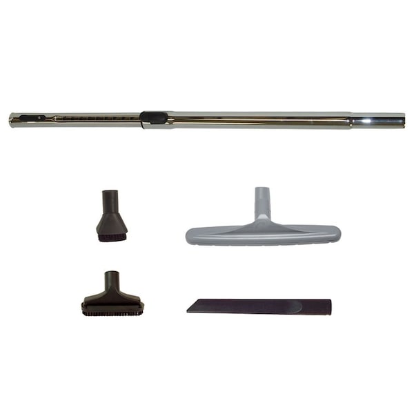 Cleaning versatility is unmatched with the Xover Performance floor tool kit, with adapter . This kit comes complete with a Xover Performance floor tool with 1in Adapter 107291, 24in to 40in chrome telescoping wand with button Lock 106343, 13in crevice tool 103086, 5in upholstery tool with removable brush 103087, 2in dust brush, rectangular 90/180° swivel 103089. Transition effortlessly from hard floors to carpets, gliding into corners and under furniture with ease.