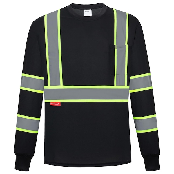 ProtectX High Visibility Long Sleeve Shirts Reflective Hi Vis Safety Shirt for Men Class 2 Construction Shirt 1 Pack Black Long Large