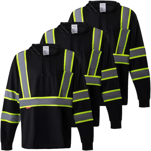 ProtectX Men's High Visibility Heavy Duty Long Sleeve Reflective Safety T-Shirts for Construction, Class 2-3 Type R Hoodie Black - Medium