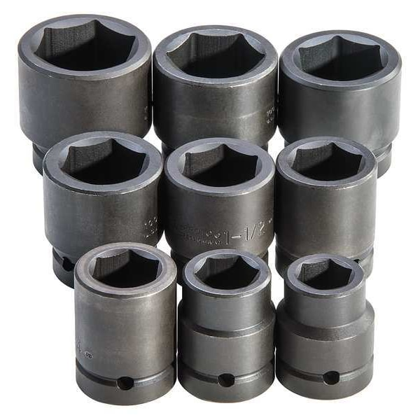 1" Drive Impact Socket Set, SAE, 9 pcs