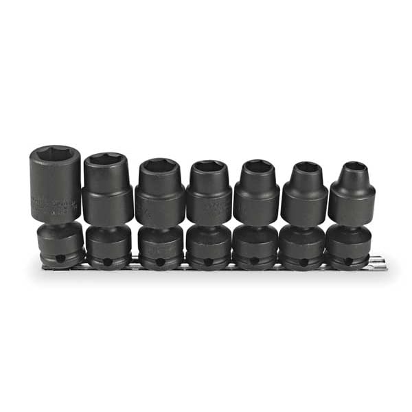 1/2" Drive Deep Universal Impact Socket Set SAE 7 Pieces 7/16 in to 13/16 in , Black Oxide