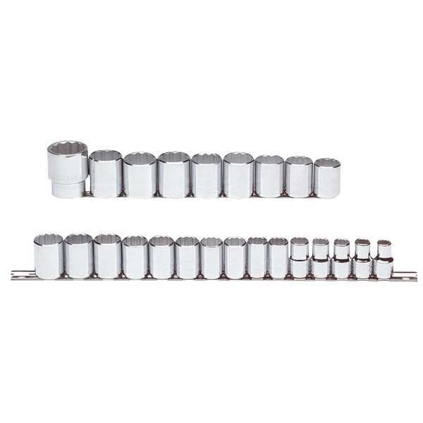 1/2" Drive Socket Set, Metric, 24pcs, Skt St, Blk Oxd, 10 to 36 mm, 24Pt