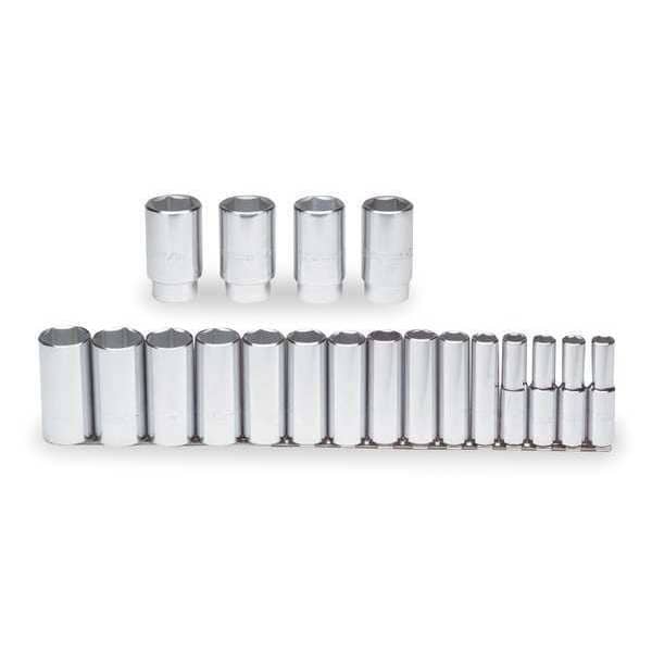 1/2" Drive Socket Set, SAE, 19pcs, Skt St, Chrm, 5/16-7/8 in, 6Pt