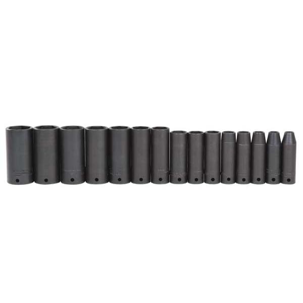 1/2" Drive Thin Wall Impact Socket Set, SAE, 15 pcs