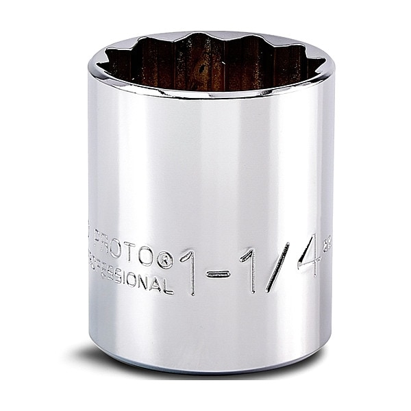 1/2 in Drive, 1-1/4" Hex SAE Socket, 6 Points, Steel, Chrome, 1 1/4 in