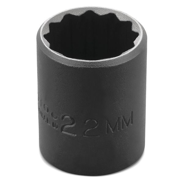 1/2 in Drive Impact Socket 22 mm Size 12 pt Standard Depth, Black Oxide