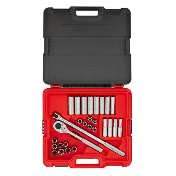 Socket Set, Standard Socket Count/Style (14) 12-Point, Deep Socket Count/Style (12) 12-Point, Deep Socket Style/Size 11MM, 12MM, 13MM, 14MM, 15MM, 16MM, 17MM, 18MM, 19MM, 20MM, 21MM, Deep 12-Point: 10MM, Flex Socket Count/Style 0, Drive Size 1/2 in, Drive Type Hand, Chrome, Impact Rated Not Impact Rated
