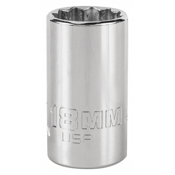1/2 in Drive, Triple Square Metric Socket, 12 Points, Steel, Chrome, 18 mm