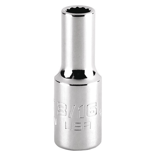 1/4 in Drive, 3/16" Triple Square SAE, Socket, 12 Points, Steel, Chrome, 3/16 in