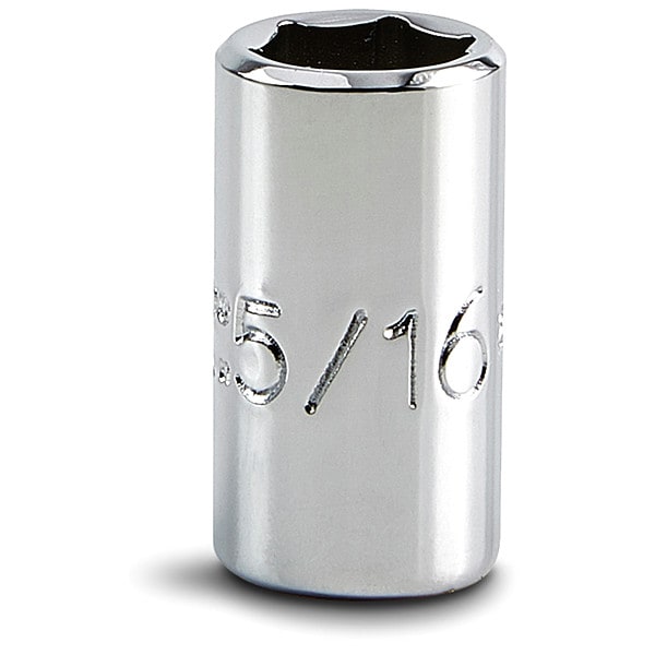 1/4 in Drive, 5/16" Hex SAE Socket, 6 Points, Steel, Chrome, 5/16 in