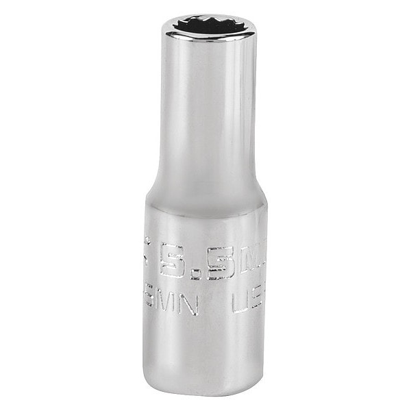 1/4 in Drive, 5.5mm Triple Square Metric, Socket, 12 Points, Steel, Chrome, 5.5 mm