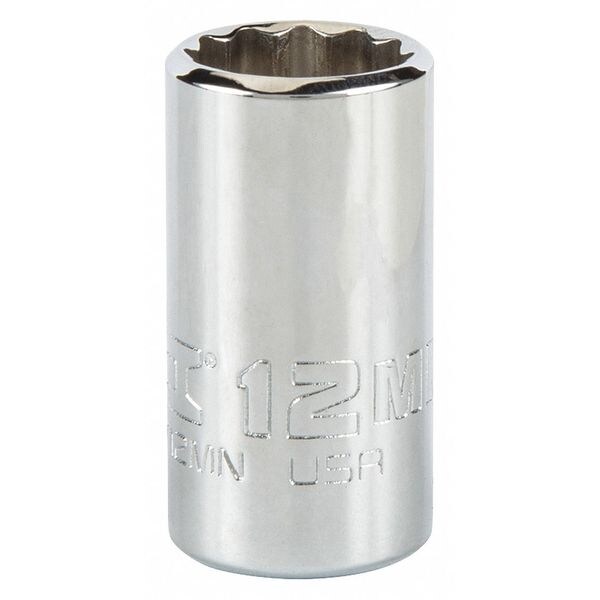 1/4 in Drive, Triple Square Metric Socket, 12 Points, Steel, Chrome, 12 mm