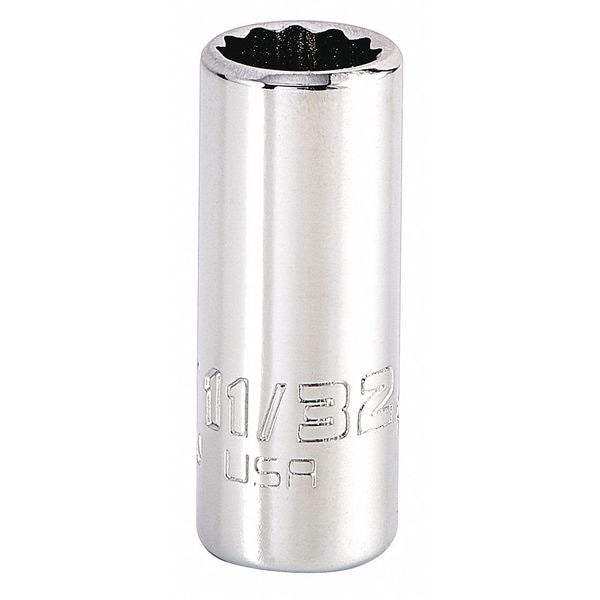 1/4 in Drive, Triple Square SAE Socket, 12 Points, Steel, Chrome, 11/32 in