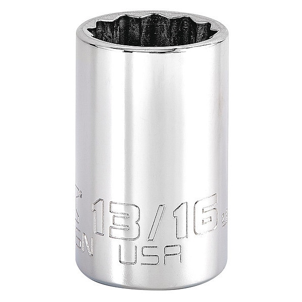 3/8 in Drive, 13/16" Triple Square SAE Socket, 12 Points, Steel, Chrome, 13/16 in