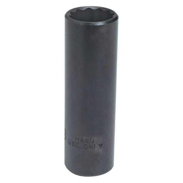 3/8 in Drive, 7/16" SAE Socket, 12 Points, Steel, Blk Oxd, 7/16 in