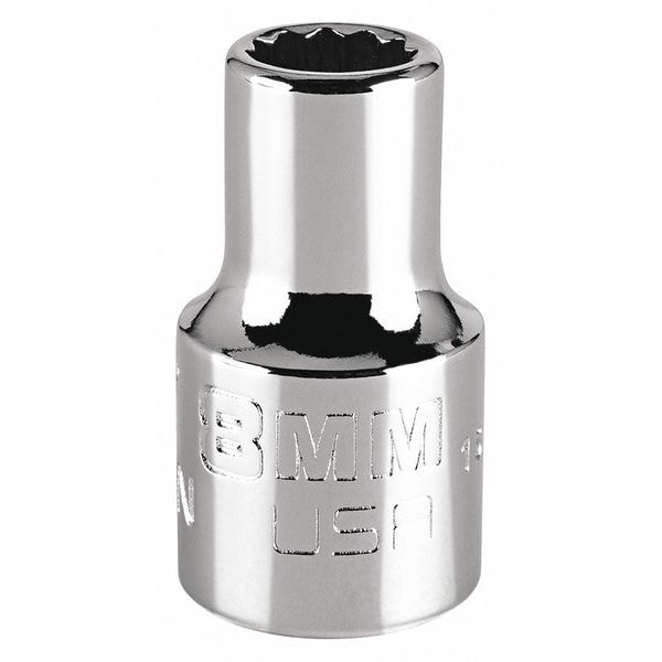 3/8 in Drive, 8mm Triple Square Metric Socket, 12 Points, Steel, Chrome, 8 mm