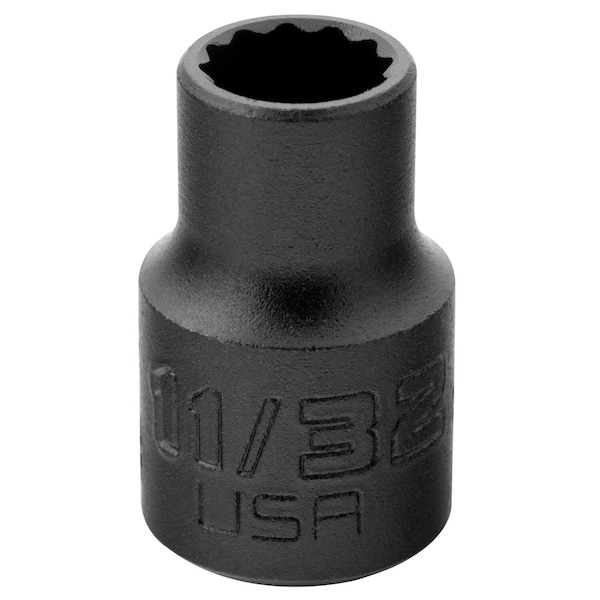 3/8 in Drive, Triple Square SAE Socket, 12 Points, Steel, Blk Oxd, 11/32 in