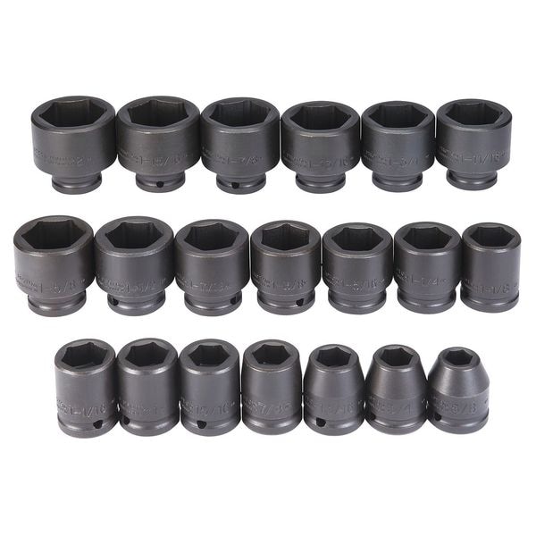 Impact Socket Set, 3/4 in Drive Size, SAE, Black Oxide, 20-Piece