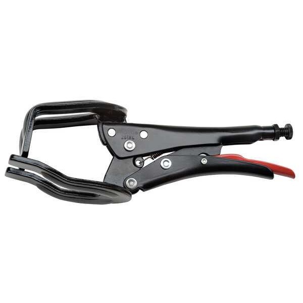 Locking Pliers, Handle Type Plain Grip, Wire Cutter No, Length 9-1/32 In., Jaw Capacity 2-23/64 In., Jaw Thickness 1-31/32 In., Standard Tool(Accessory Needed for Tethering), Material Alloy Steel, Finish Black Epoxy, Jaw Length 2-5/32 In., Jaw Width 2-3/4 In., Jaw Release Lever Spring Loaded Release Lever, Screw Mechanism Screw Bolt w/ Locking Nut