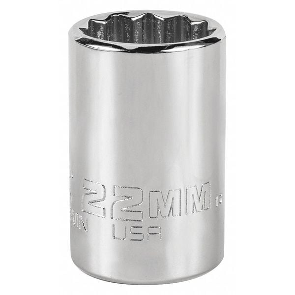 Socket, 1/2", Metric, Size 22mm